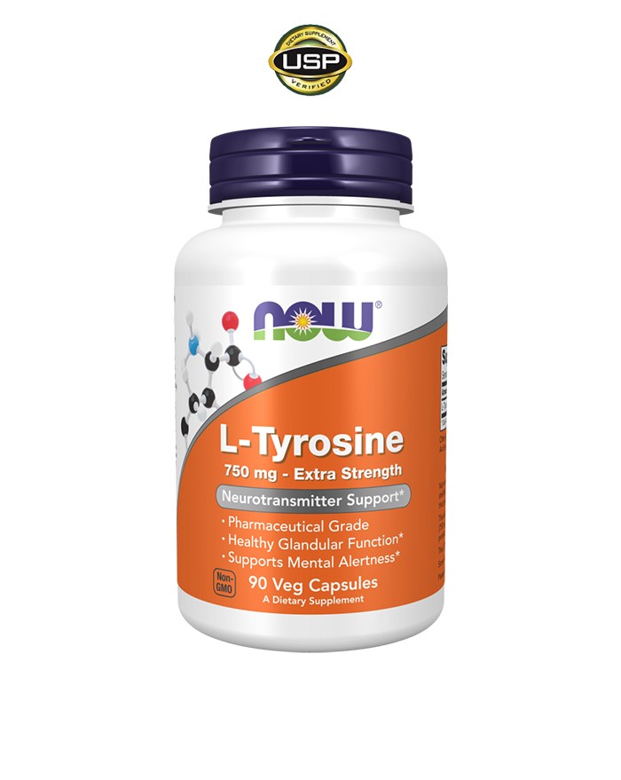 NOW® L-Tyrosine 750 mg é um suplemento de L-Tirosina, um aminoácido essencial, resultante da ação enzimática sobre a fenilalanina. Funciona como precursor de neurotransmissores tais como a Epinefrina, Norepinefrina e Dopamina. Assim A L-Tirosina atua sobre as suprarrenais mas também sobre a tiróide uma vez que é necessária a sua presença para a produção da hormona T4. Participa na formação de melanina e, mais importante ainda, na formação de Coenzima Q10 que por sua vez participa na formação de ATP, o combustível celular.